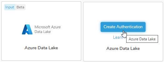 - Hover over the Microsoft Azure Data Lake connector and selectCreate Authentication.