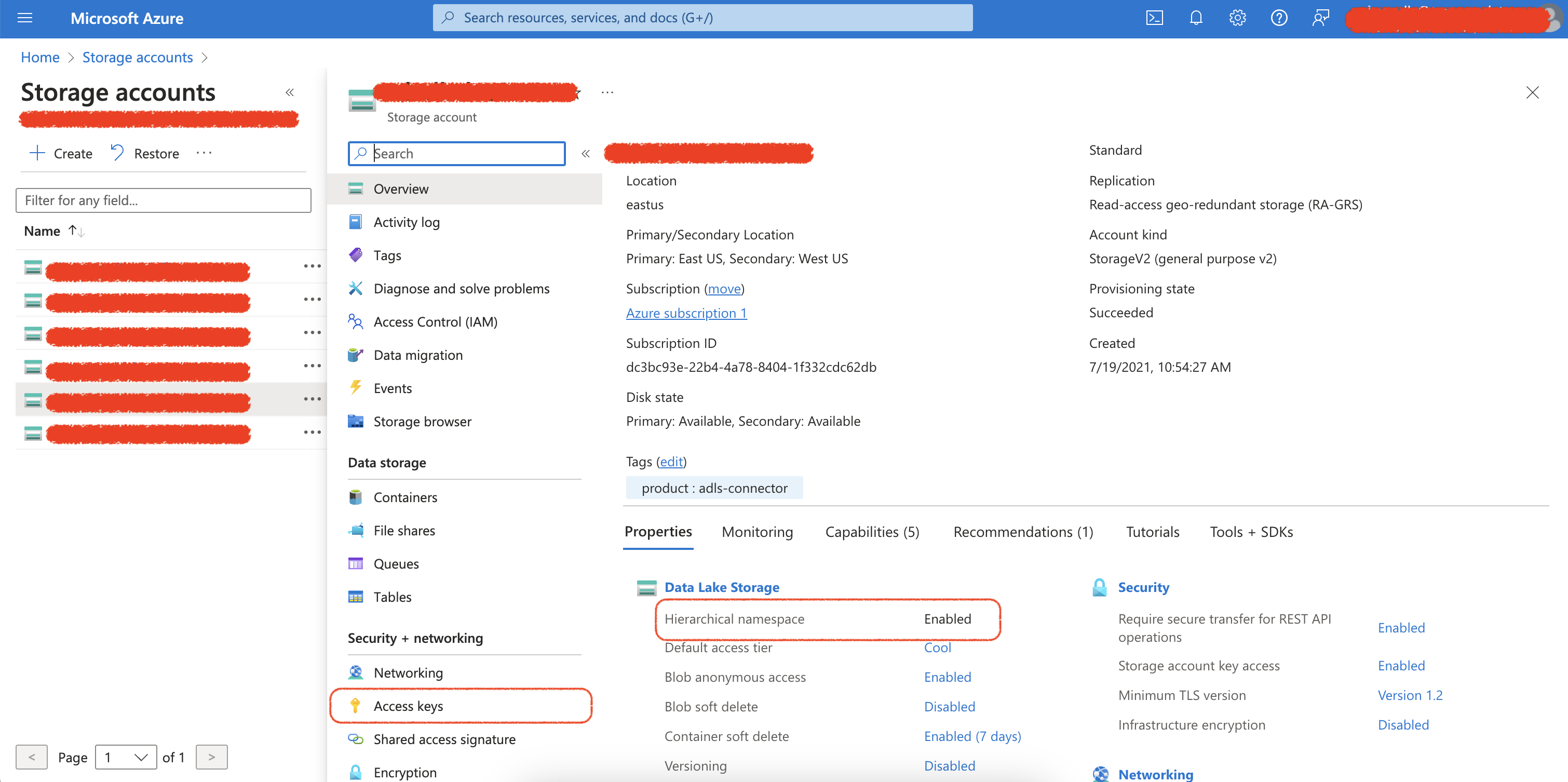 Select your storage account and make sure that the hierarchical namespace option is enabled.
