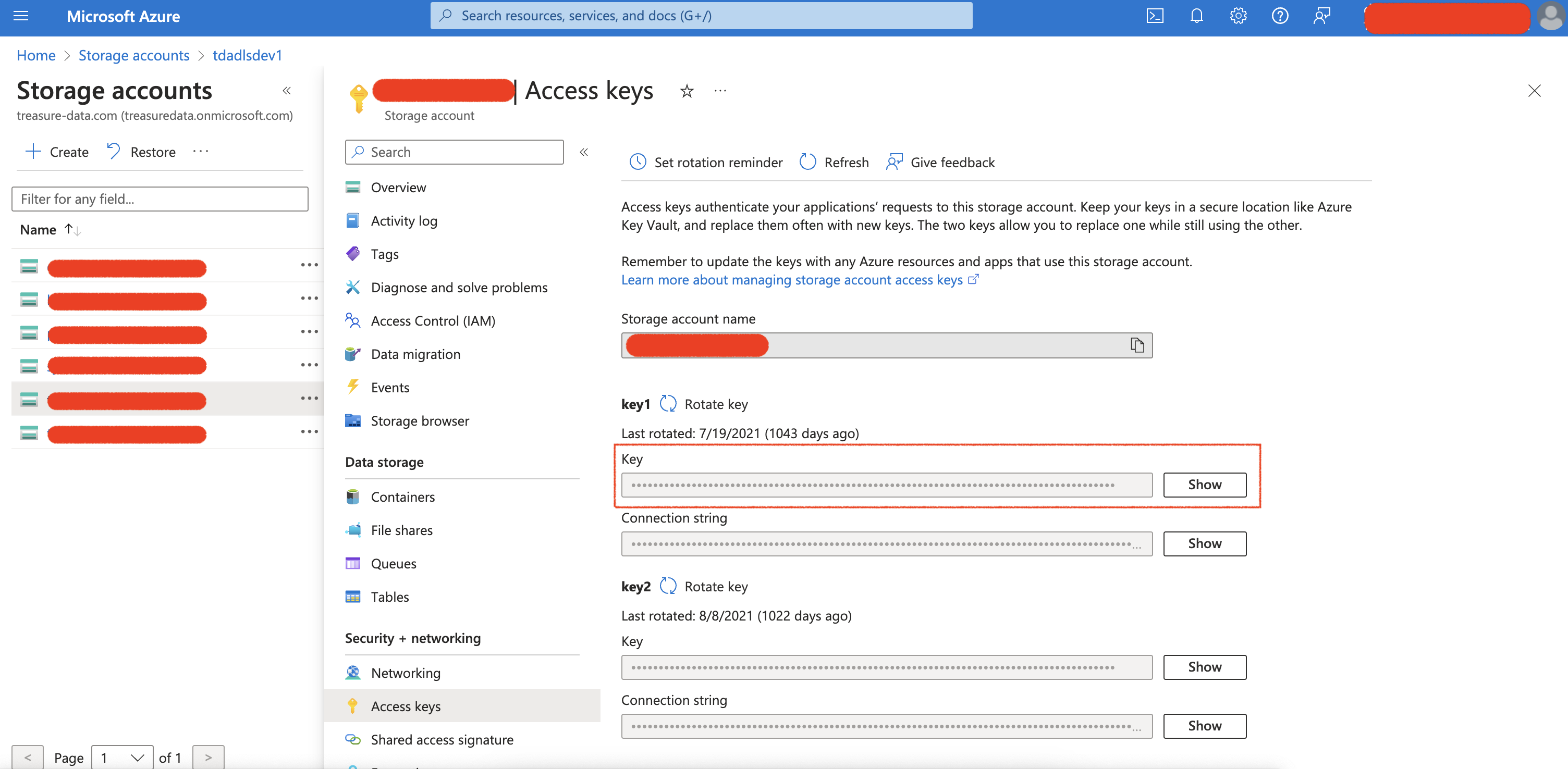 - Select the Access keys from the Security + networking menu**.**