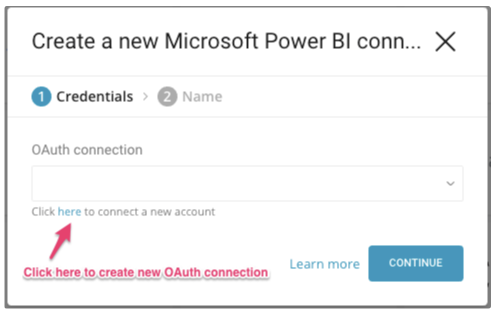 Select the link under OAuth connection to create a new one. You can also select an existing connection and skip the rest of this section.