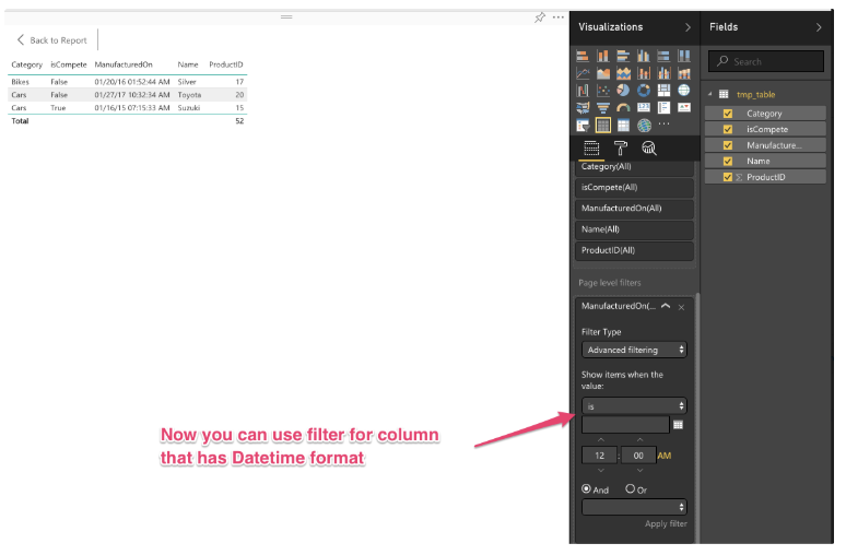 ) tbl (Category, Name, created_date, isCompete, ProductID)This example query requires no source table.