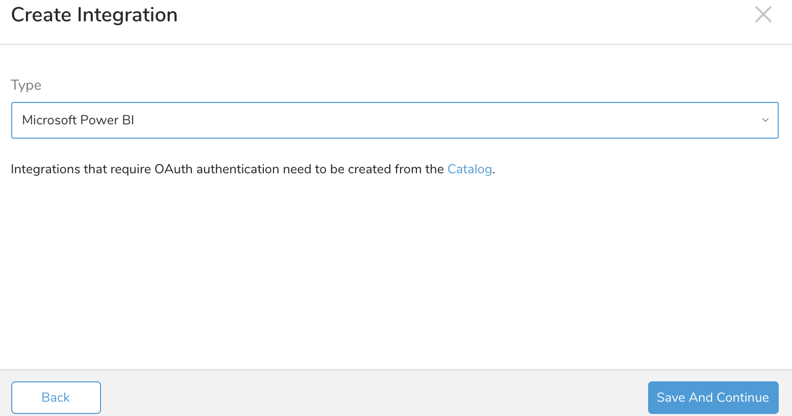 Search and select Power BI. The dialog opens: