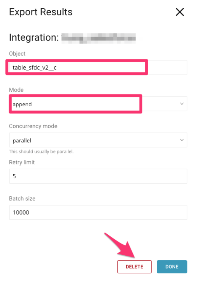 sfdc_v2://username:passwordsecurity_token@hostname/object_nameIf you have a workflow that used the SFDC, you can keep your result settings the same, but need to update result_connection to the new connection_name.