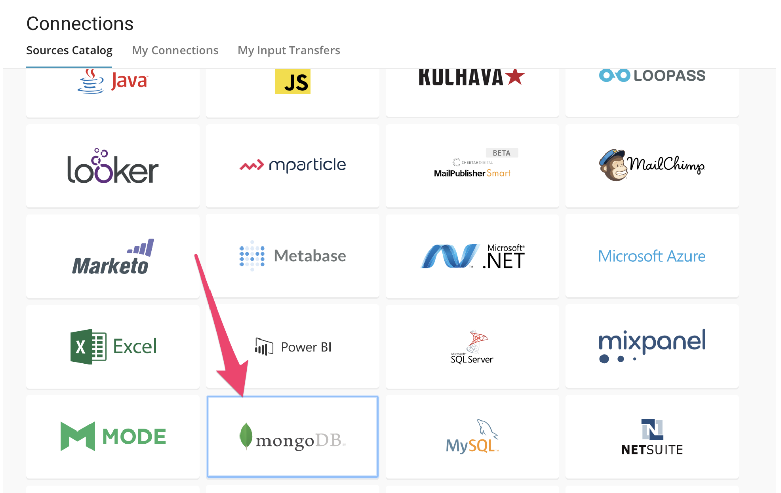 You can create an instance of the MongoDB data connector from the TD Console. Select create on the MongoDB connector tile.