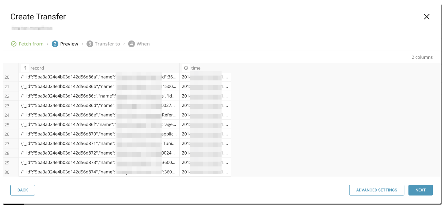 If there are no errors with the connection, you see a preview of the data to be imported. If you are unable to see the preview or have any issues viewing the preview, contact support.