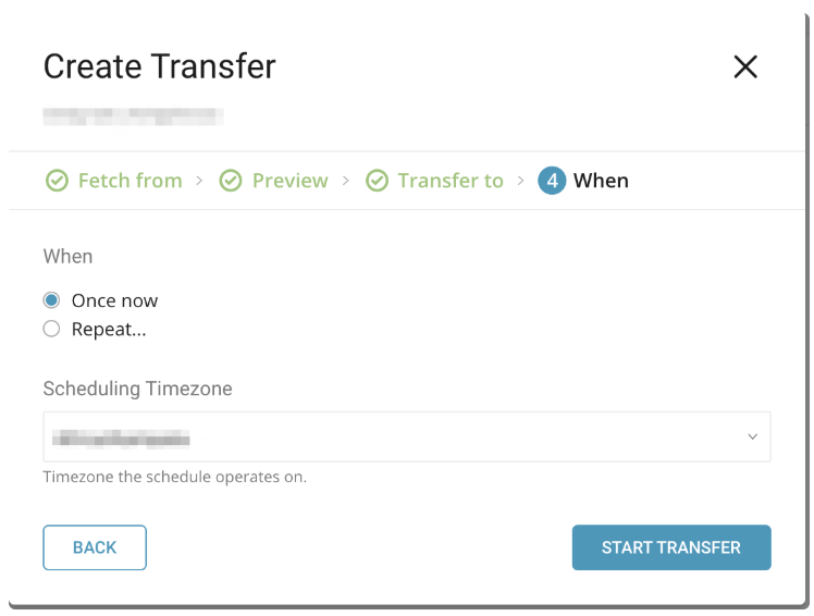 In this phase, you can choose to run the transfer only one time or schedule it to run at a specified frequency.