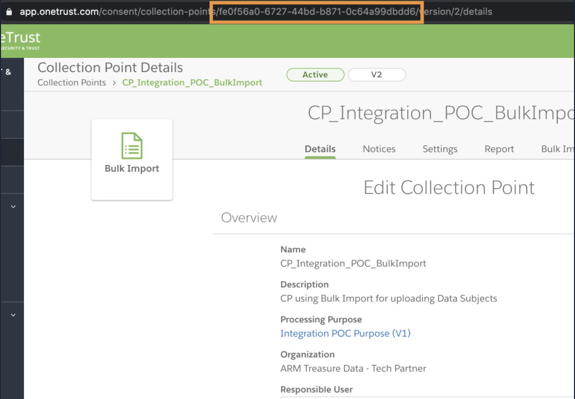 | collection_point_guid(Optional) | GUID of a single Collection point to limit data, if not provided, get from all Collection Points. It will show if the Data Type are Data Subject Profile and Purpose (API V4). | String. | No | |
