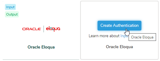 Search for Eloqua in the Catalog; hover over the icon and select Create Authentication.