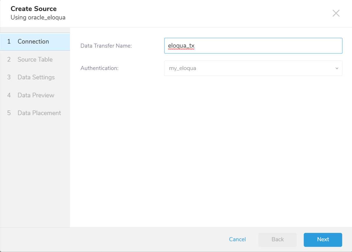 - Search for Oracle Eloqua in the Catalog. Hover your mouse over the icon and select Create Authentication.
