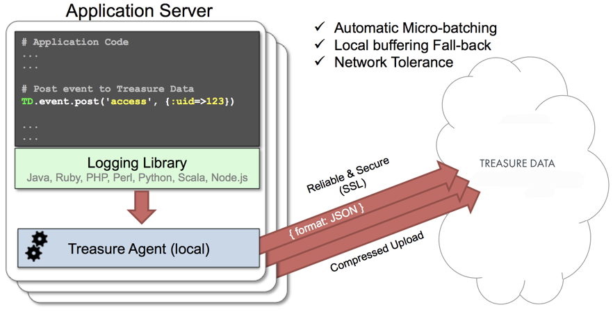 Install td-agenton your application servers. td-agent sits within your application servers, focusing on uploading application logs to the cloud.