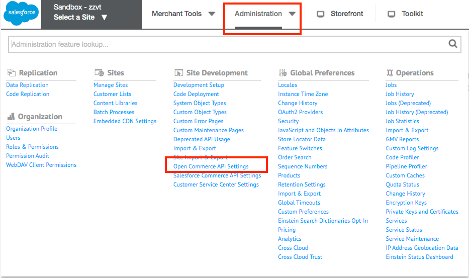 - Select Administration >> Open Commerce API Settings