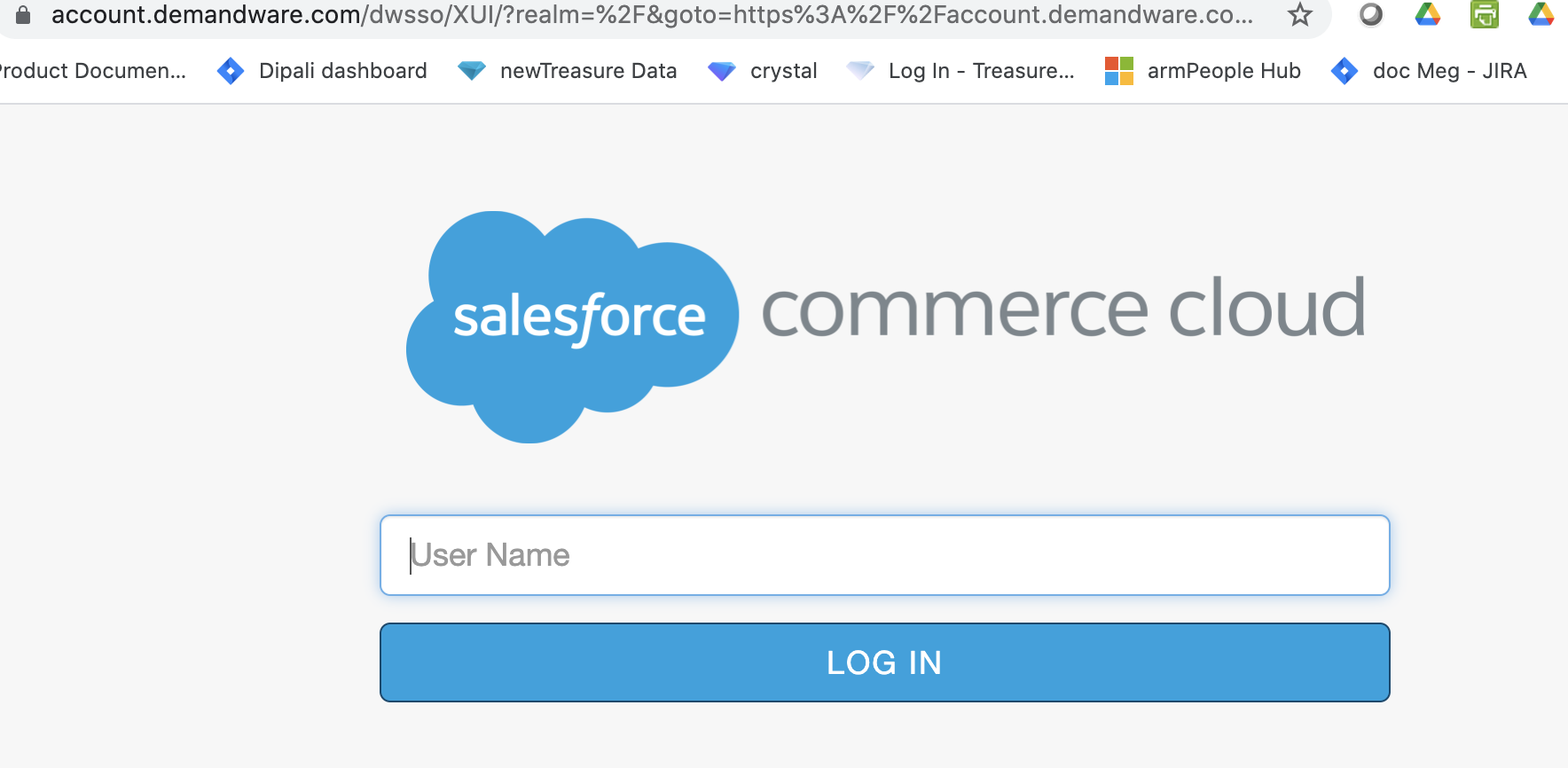 - Navigate to the Salesforce Cloud Commerce UI and login. For example, Account Manager UI.