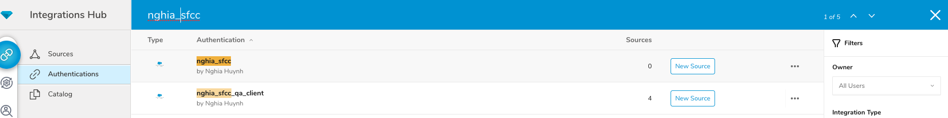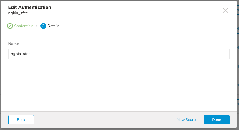 After creating the authenticated connection, you are automatically taken to Authentications.