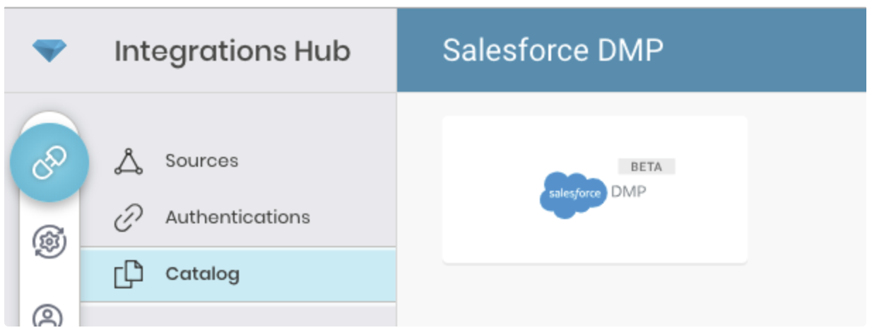 Go to Integrations Hub > Catalog and search and select Salesforce DMP.