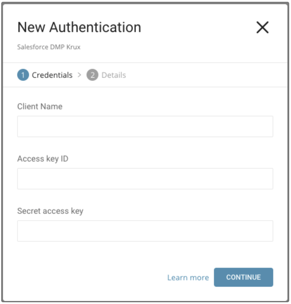 Edit the client name, access key id, and secret access key that you retrieved from Salesforce DMP.