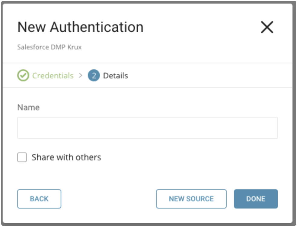 Name your new Salesforce DMP Connection. Select Done.