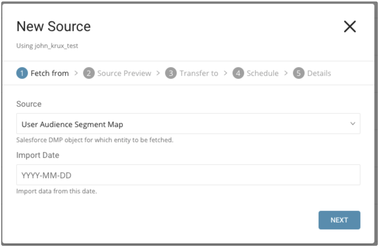You can import Media Campaign, Paid Search Campaign, Site Campaign, User Audience Segment Map, Segment Mapping File or Dissent Lists from Salesforce DMP (Krux) into Treasure Data.