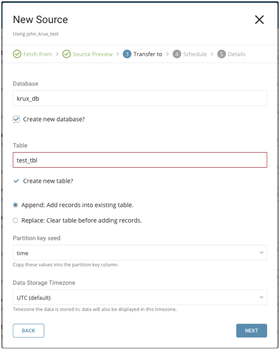 Select whether to append records to an existing table or replace your existing table.