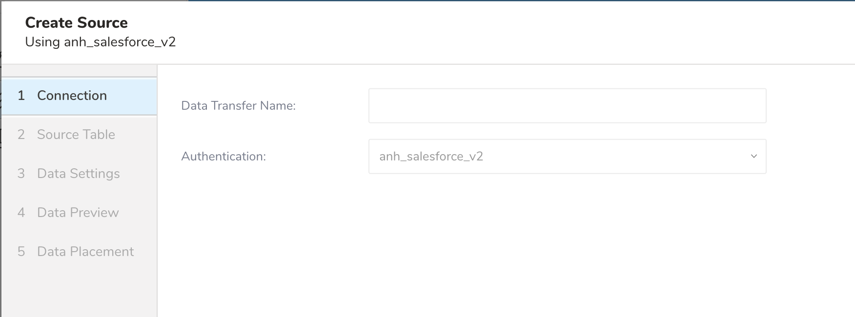 Type a name for your Source in the Data Transfer field**.**