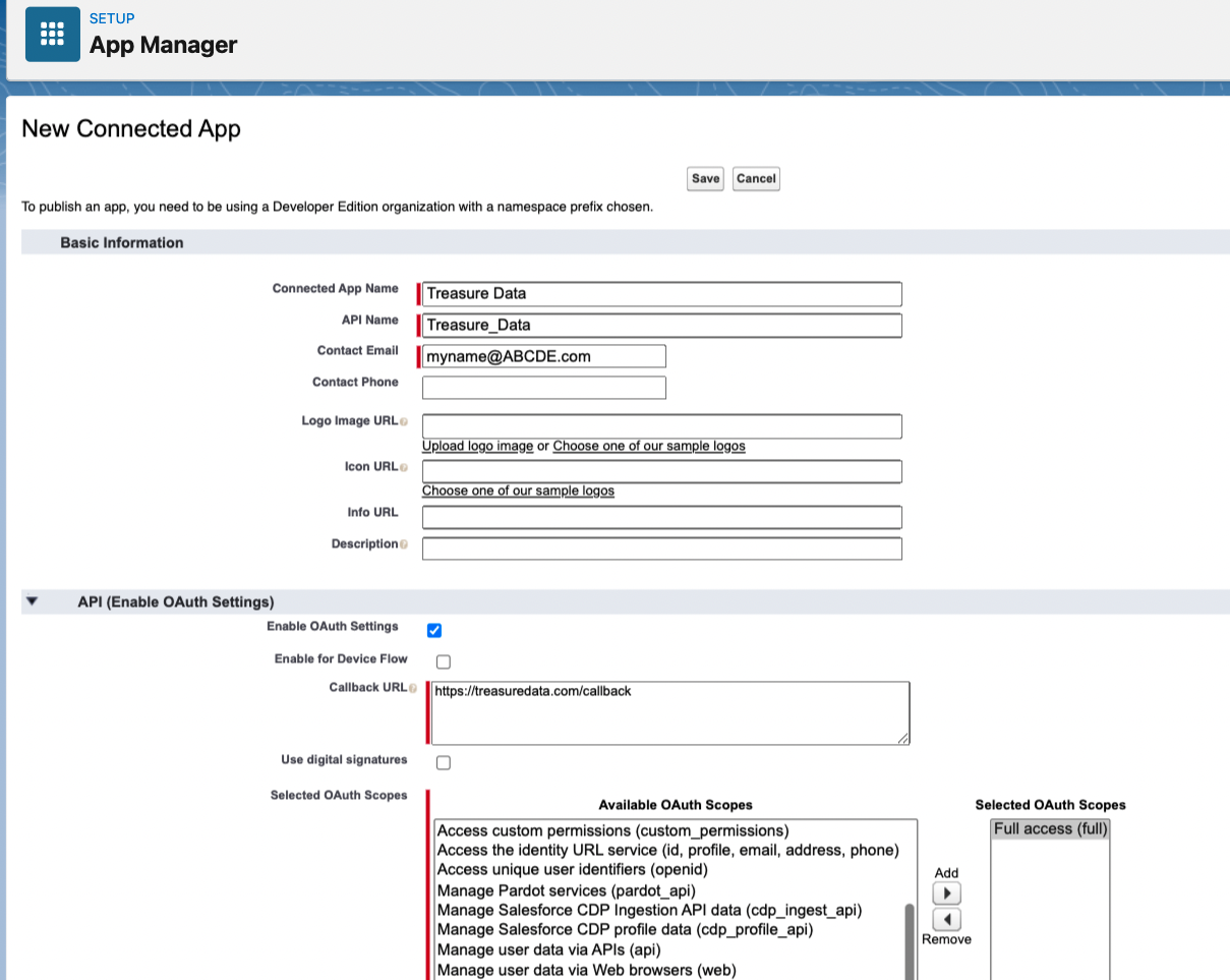- Allowed access to Salesforce from Treasure Data: sometimes configuring this requires knowing and configuring your TD static IP address. Contact support if you need the static IP address information.