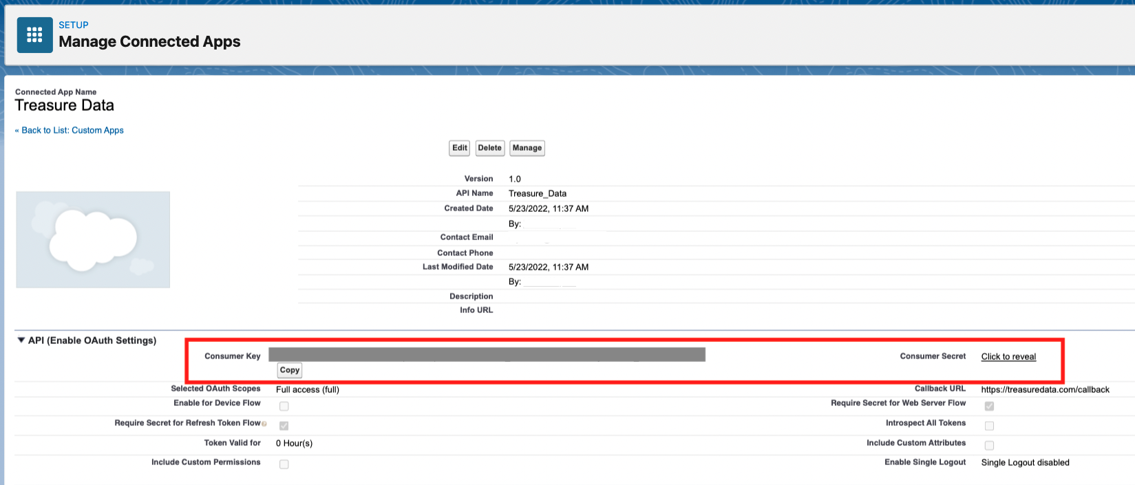 - Allowed access to Salesforce from Treasure Data: sometimes configuring this requires knowing and configuring your TD static IP address. Please contact support if you require the static IP address information.