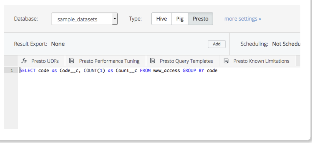 FROM table my_tableYou can use Scheduled Jobs with Result Export to periodically write the output result to a target destination that you specify.