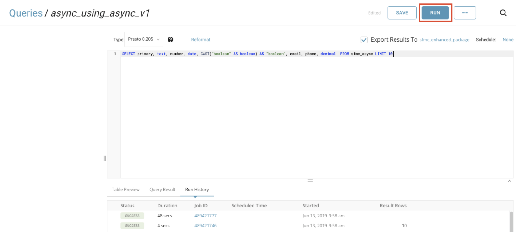 Enhanced Package: We highly recommend that you use the Salesforce Marketing Cloud V2 Export Integration. Rather than the legacy integration.
