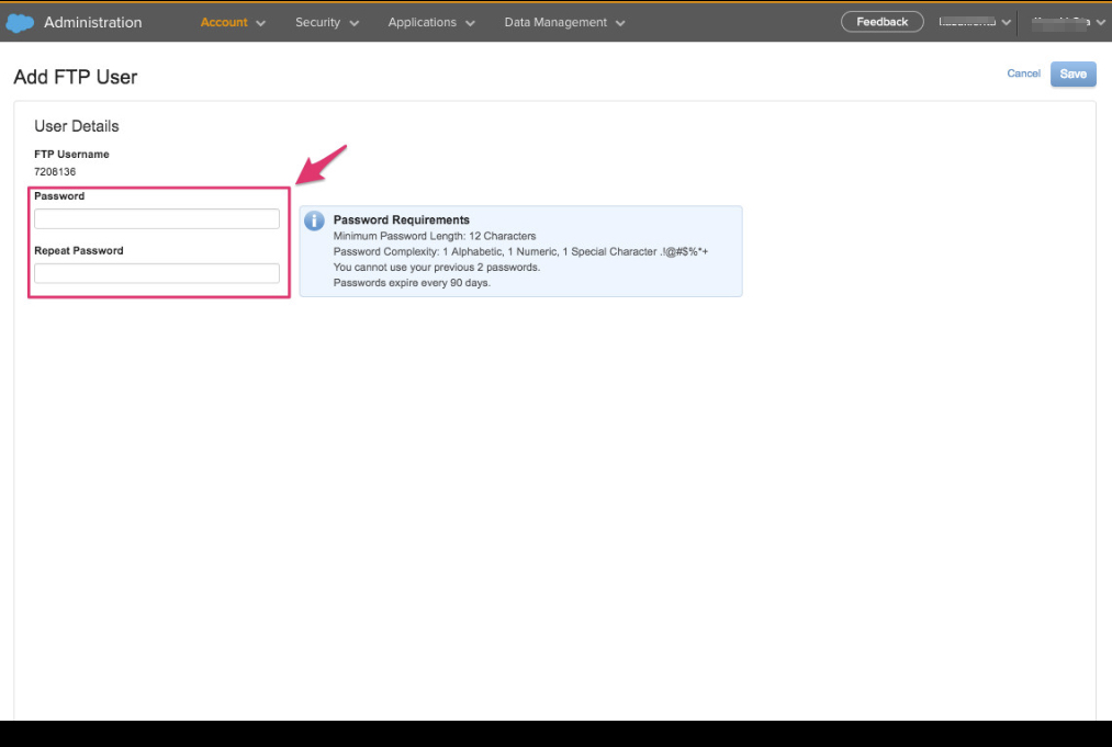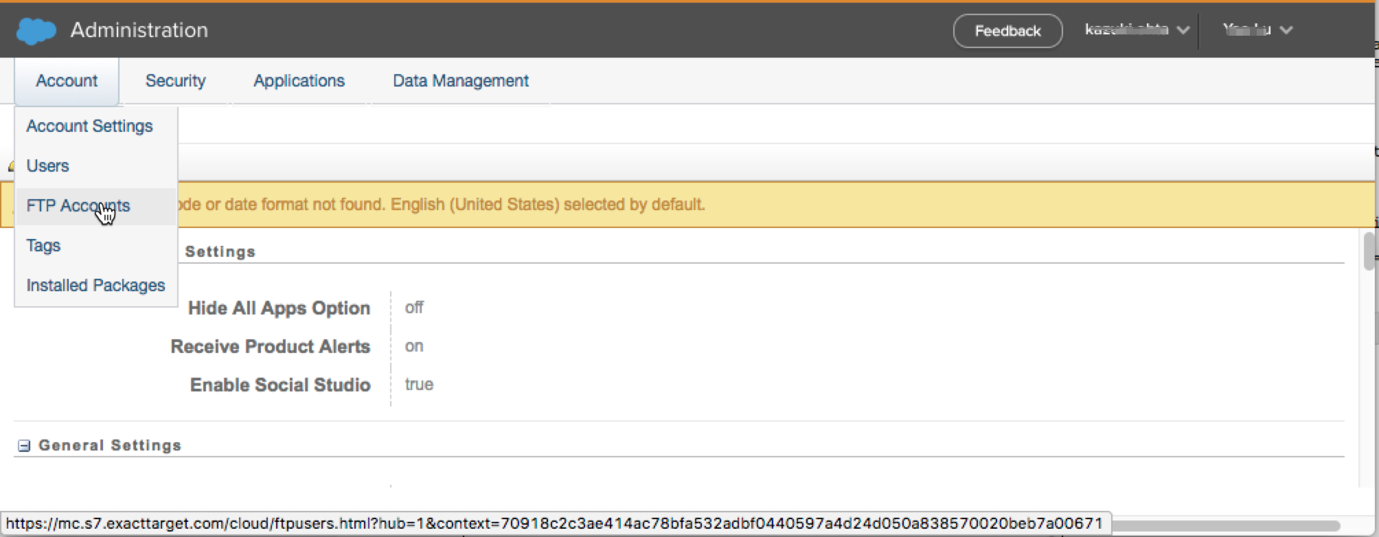 From the Account drop-down menu, select FTP Accounts. You are to establish an SFTP account.