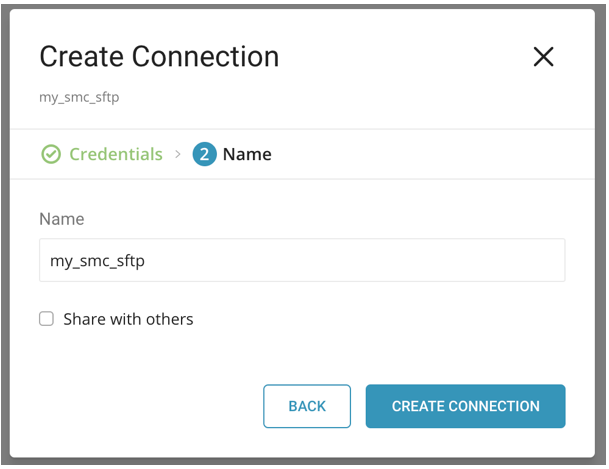 After entering the credential information, you must enter a connection name to filter your connections in Choose Saved Connection dialog.