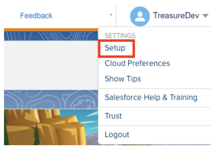 On the Welcome Page, select your name on the top-right corner then select Setup.