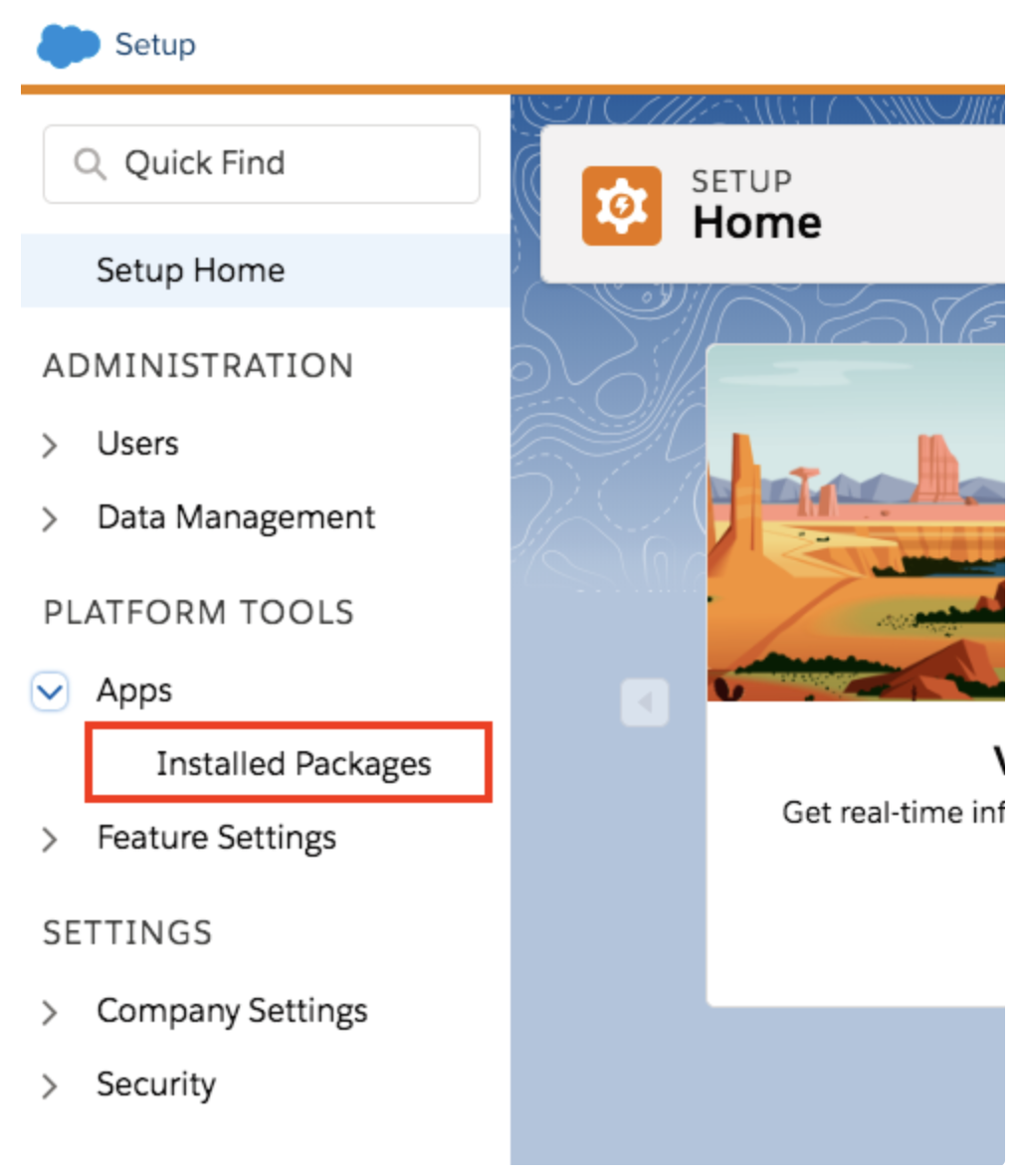 On the left side menu of the new screen, select App > **Installed Packages.