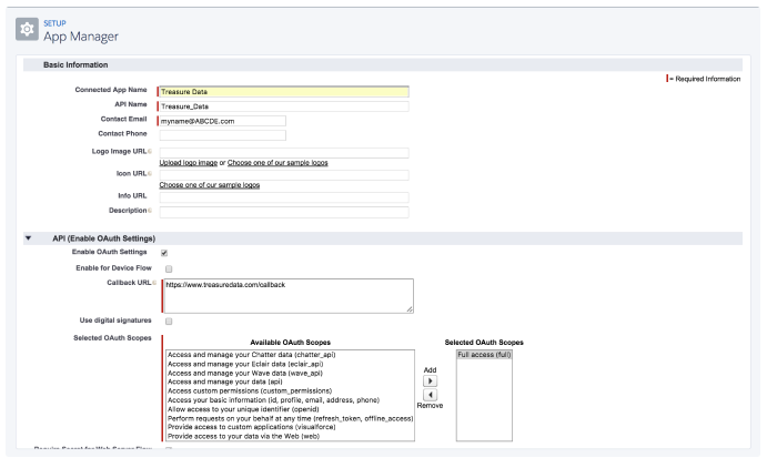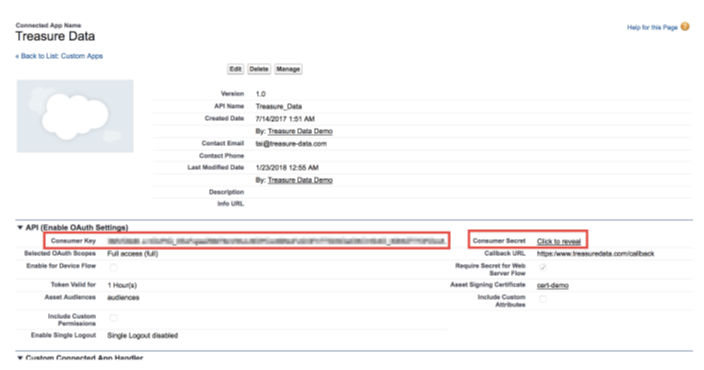 - Allowed access to Salesforce from Treasure Data: sometimes configuring this requires knowing and configuring your TD static IP address. Contact support if you require the static IP address information.