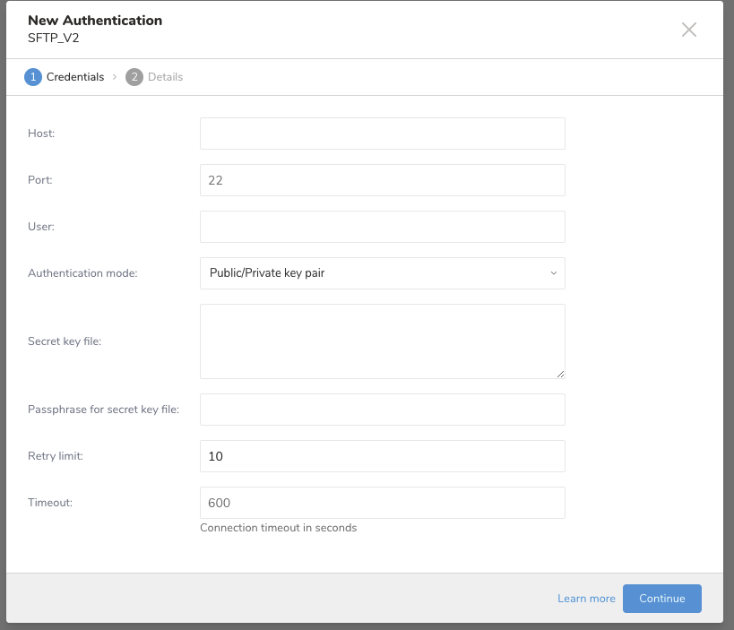 | Authentication mode | The way you choose to authenticate with your SFTP server. |