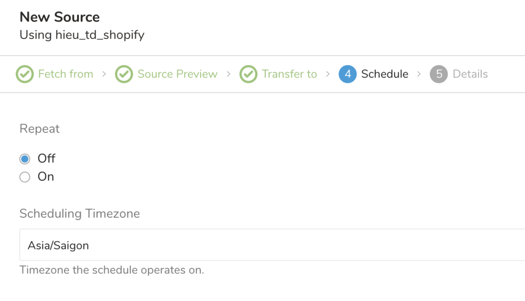 - Specify the schedule of the data transfer using the following dialog and select Next.