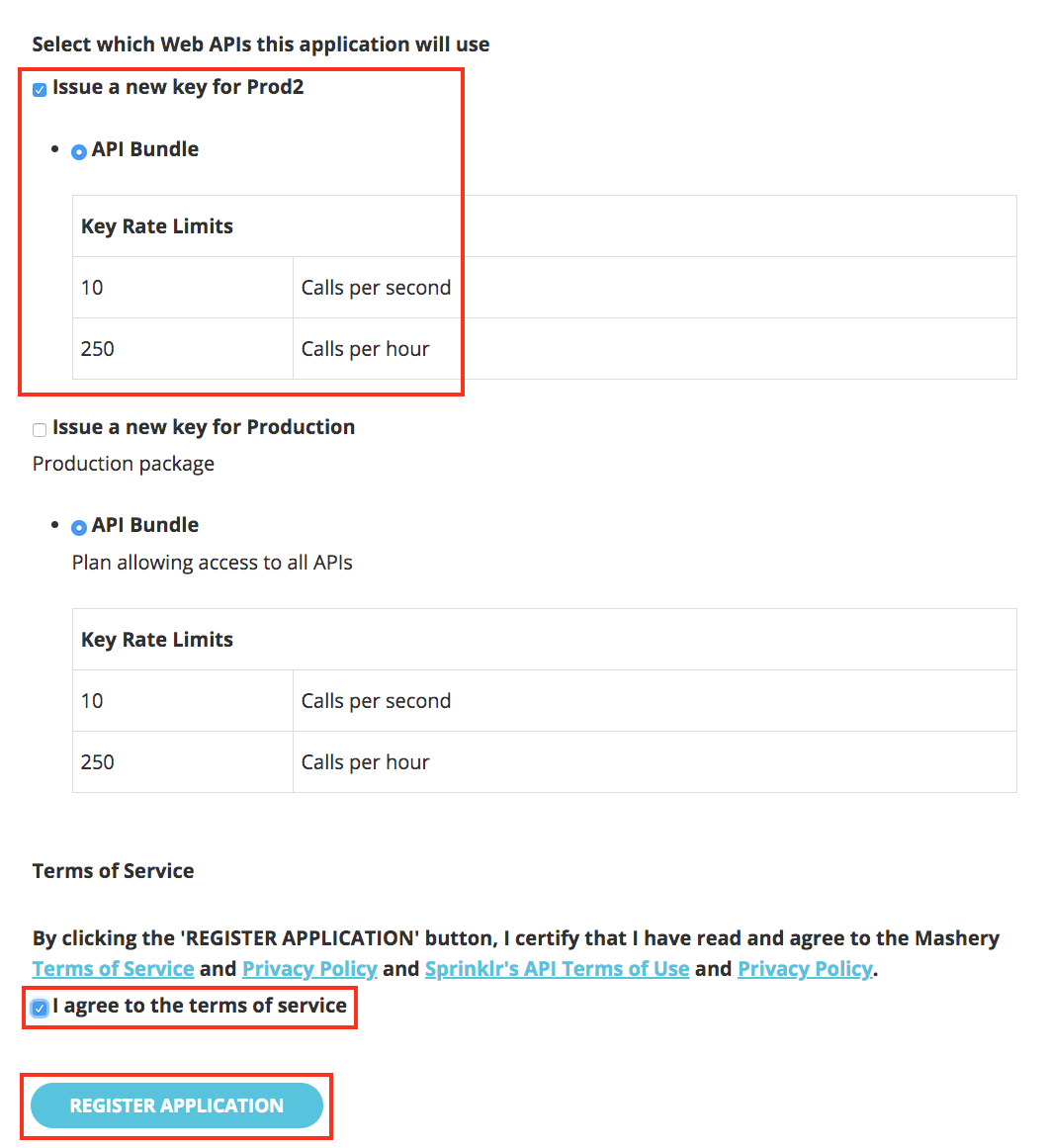Note: If your environment is not included in the available options (for example, prod0, qa4 …), contact Sprinklr to create the application. You also can contact Sprinklr to increase the rate limit based on your needs.