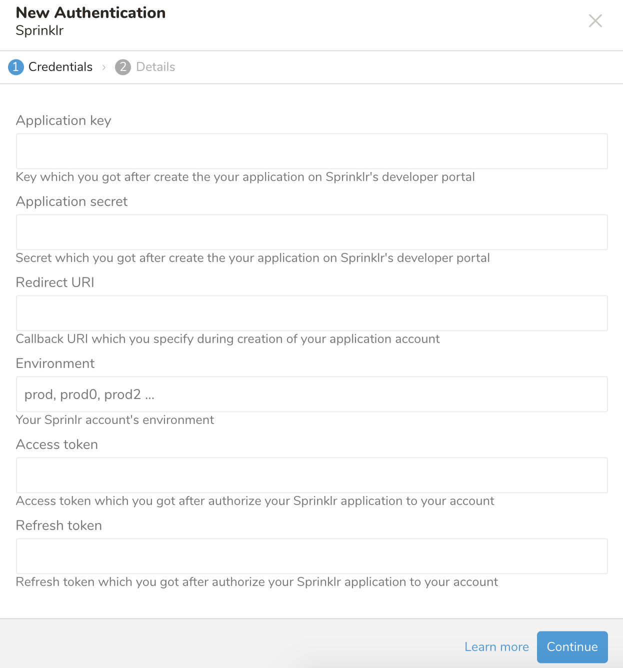 | Environment | User's Sprinklr environment - could be retrieved by login to the Sprinklr web app | Yes |