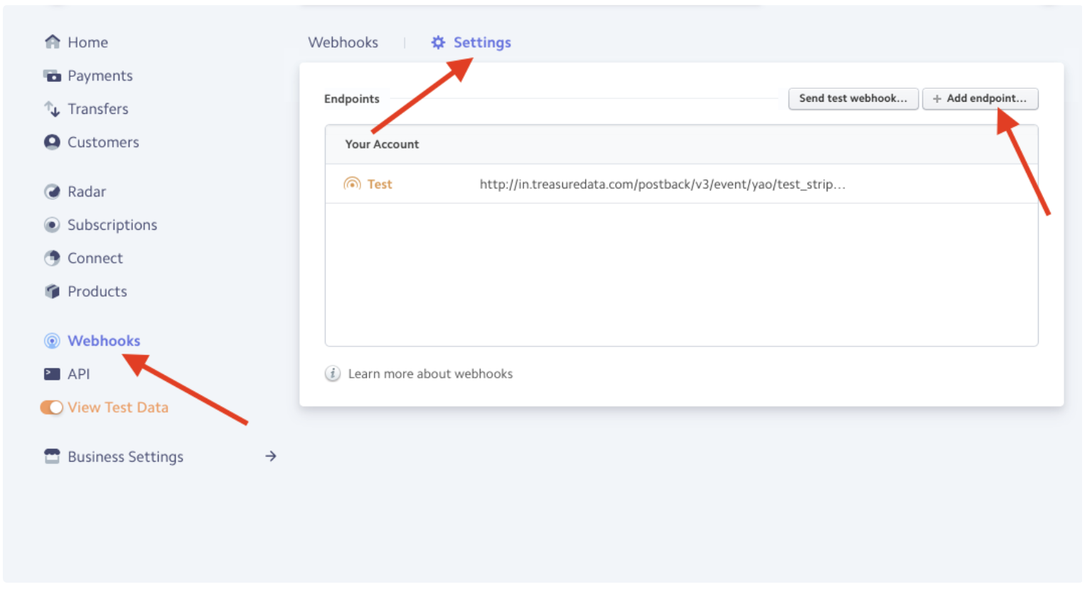 Login to Stripe account, select Webhooks —> Settings —> Add endpoint
