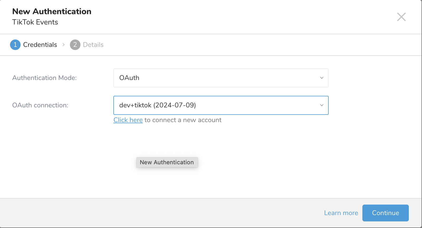 | auth_method | Authentication method. Supported values: - oauth: OAuth authentication - access_token: Long live access token generated in the TikTok Event Manager. |