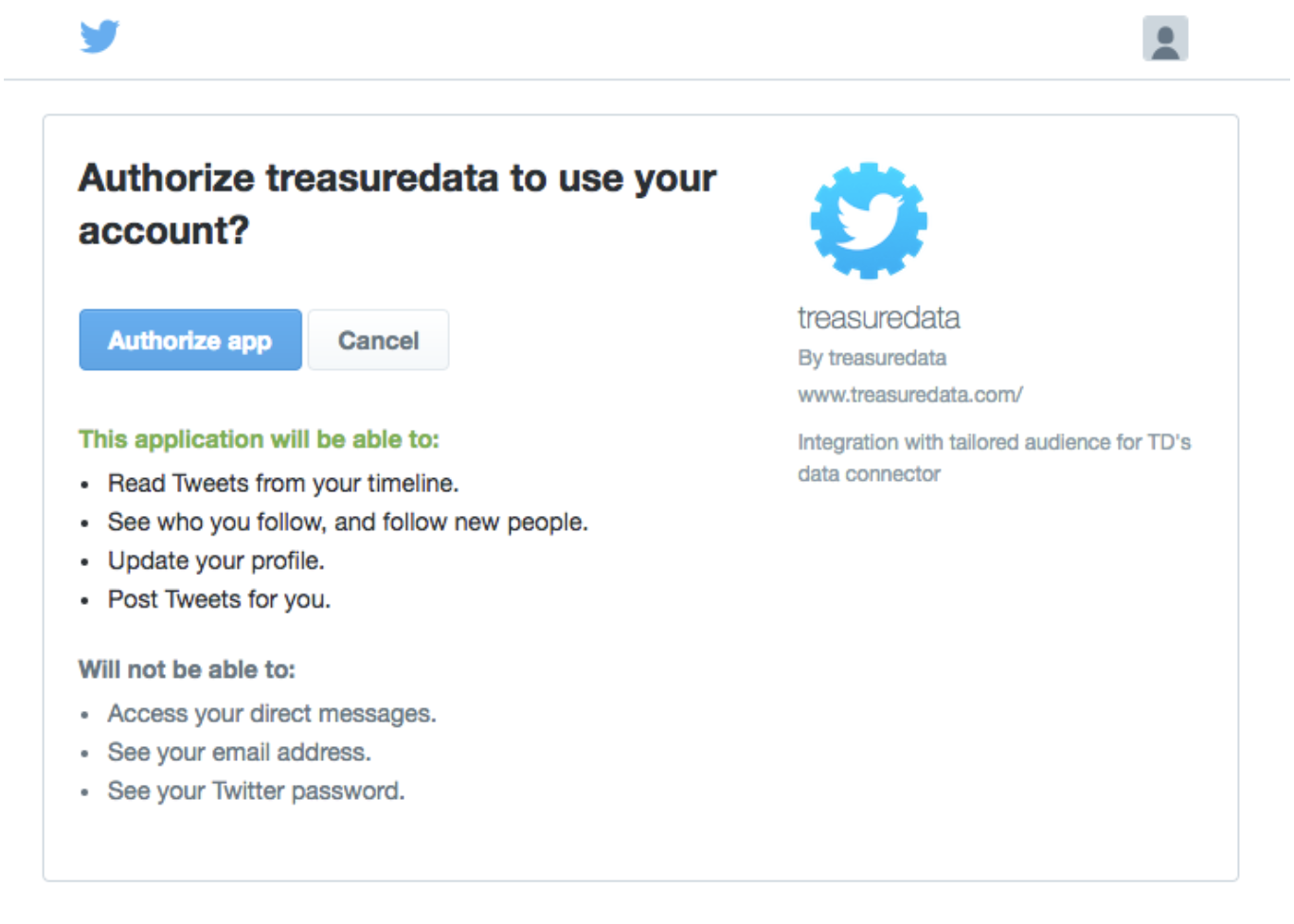 - Authorized Treasure Data Twitter app access to your Twitter Ads Account
