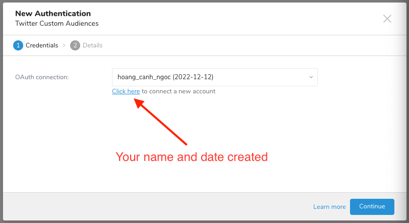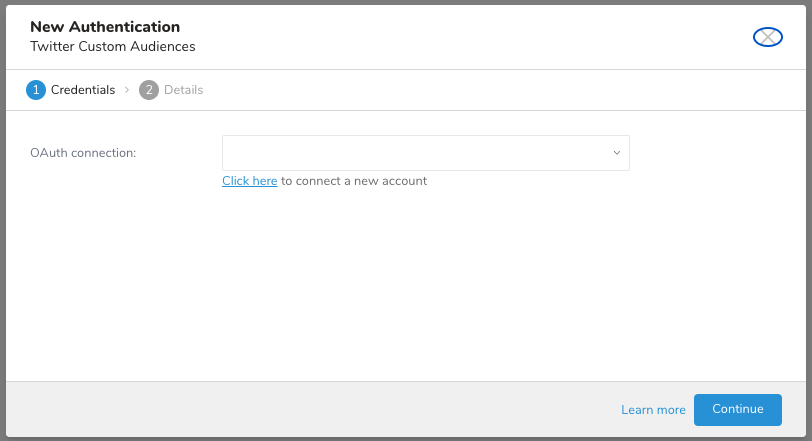 - Select an existing OAuth connection for Twitter, or select the link under OAuth connection to create a new one.