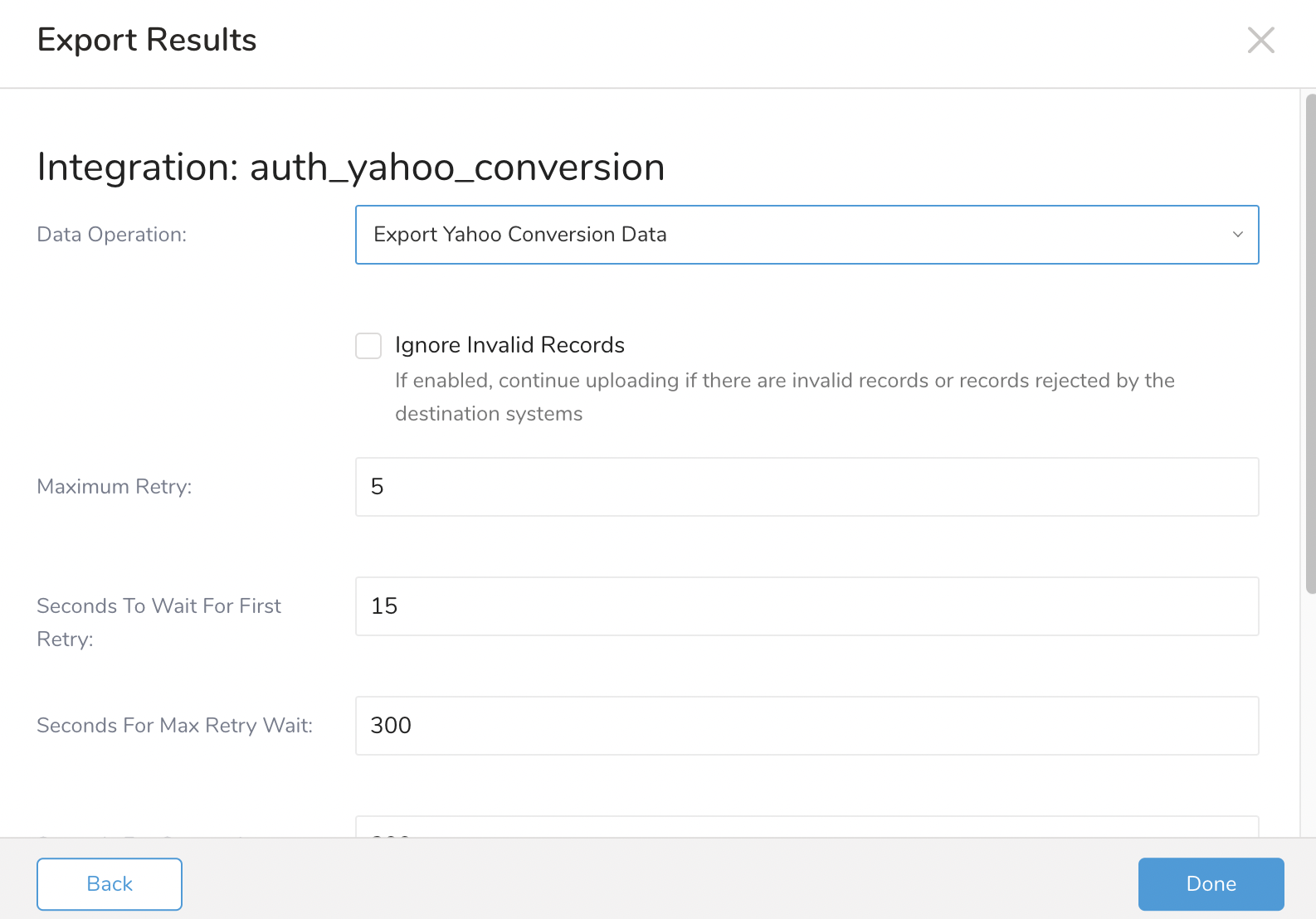 | Data Operation | Enum Value: Export Yahoo Conversion Data (Default) |