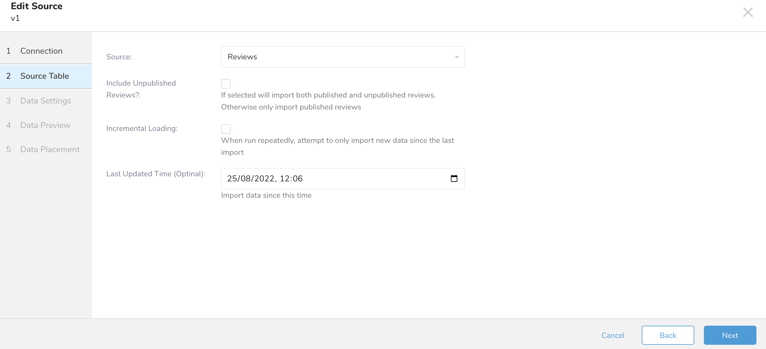 | include_unpublished_reviews | If selected, will import both published and unpublished reviews. Otherwise, it imports only published reviews | boolean | false | |
