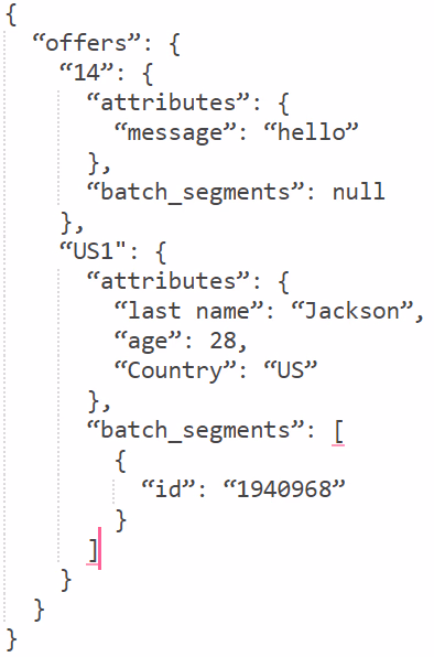 All matching personalization payloads are returned in the response payload. If the customer meets the entry criteria for a personalization, the system returns the text of offers as well as any additional customer information that may be pertinent to the offer.