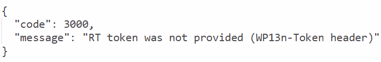 | 3000 | RT token was not provided (WP13n-Token header). |
