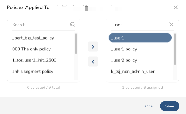 If the policy still has users assigned, a warning displays and you need to remove all users from the policy.