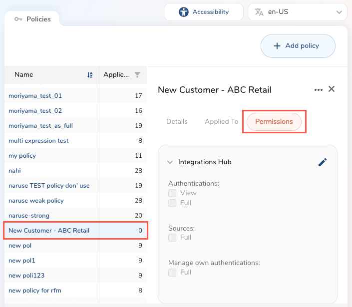 Users without policy-based permissions will not see additional journey policy-based permissions and rely on Audience Studio folder permissions.