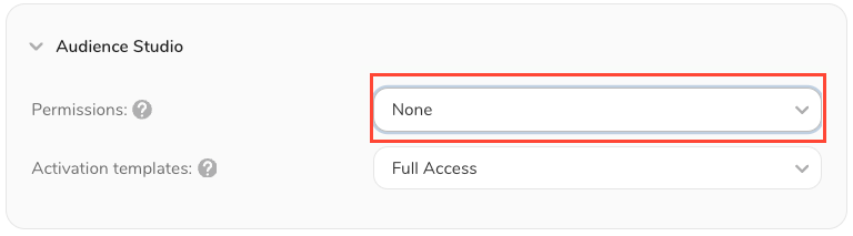 | None | Users do not see Audience Studio in the navigation; users cannot view any Audience Studio features. ![]() |