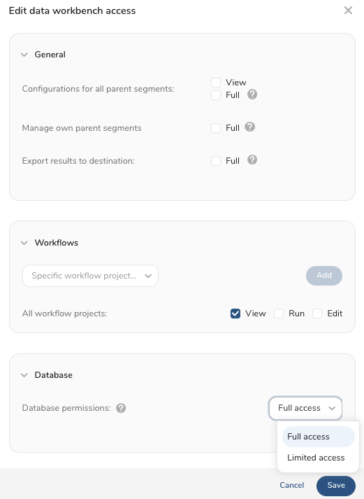After the policy-based database permission feature is enabled, database access at the user level is no longer available. You cannot revert to the previous database access (legacy).
