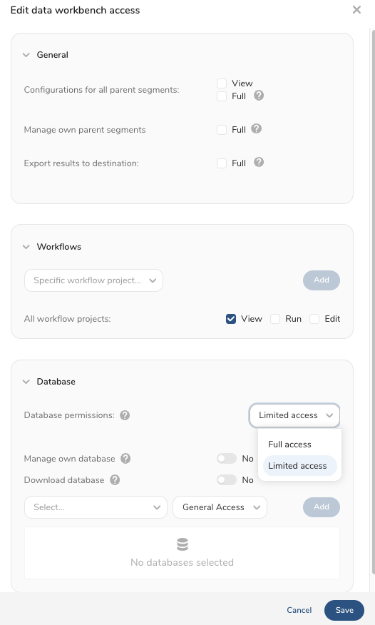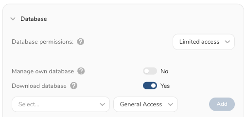 - Select Save. A policy with Download permission allows a user to download databases to which they have access.