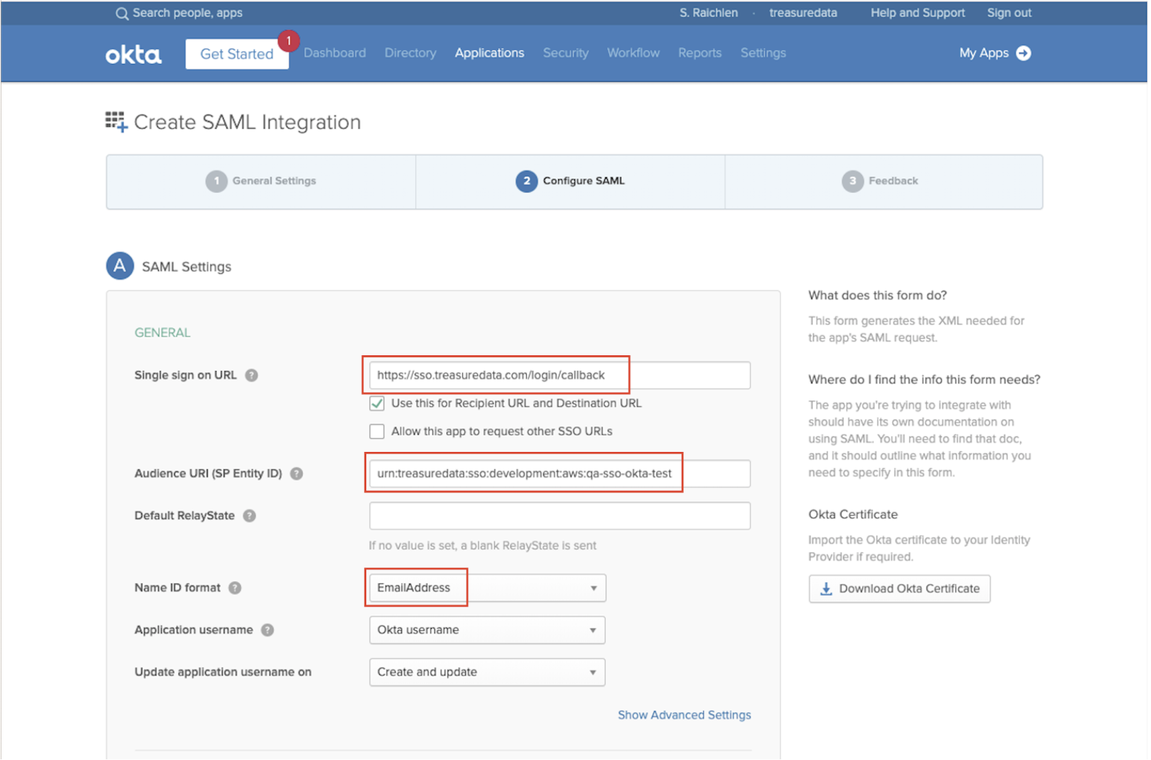 You need to ensure that the identifiers in Treasure Data match the Application usernames in Okta.